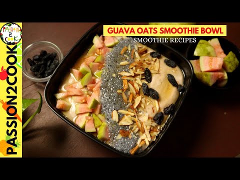 A guava oats smoothie bowl is a healthy breakfast option. It is made with oats, almonds, cashew nuts, peanuts, and flax seeds. It has a nice fruity flavor and it is a perfect way to start your day.